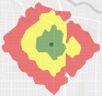 Travel times within a 5-, 10-, and 15-minute drive from a point